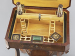 Mahagoni, Ahorn. Furnier: Mahagoni, Palisander, Ahorn, gelb gefärbt, Buchsbaum. Bein, Perlmutt, Metall, Textil. |