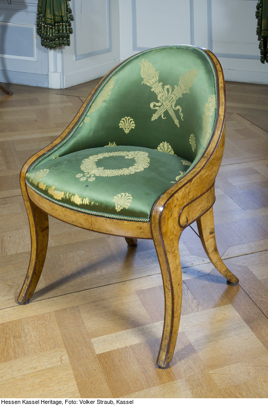 Bemerkung: vier Sessel und ein Sofa, Inv.Nr. 2.1.1864 - 2.1.1868, gehörten um 1823 zum Inventar des Schlafzimmers, Residenz Palais, Kassel.