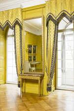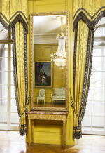 Holz, geschnitzt, vergoldet, teils gelb gefaßt, Spiegelglas, zweiteilig |