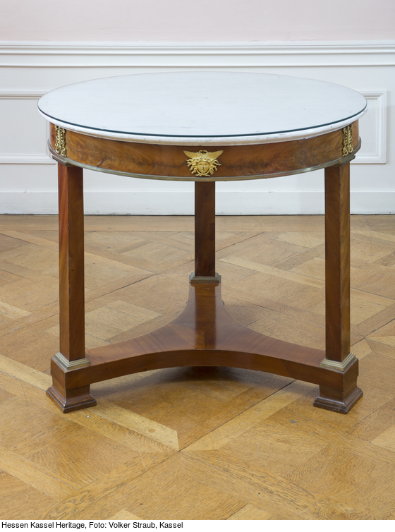 Der Tisch ist als Bestandteil der für König Jérôme zwischen 1809 bis 1812 aus Paris gelieferten Möbel nach Kassel gekommen.