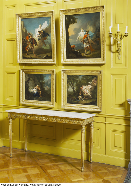 Eiche, geschnitzt und vergoldet, Nadelholz, Marmor, weiß mit grauer Äderung |