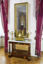 Holz, Matt- und Glanzvergoldung, Stuckauflagen, Spiegelglas, zweiteilig |