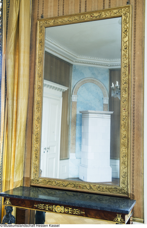 Holz, teils geschnitzt, Matt- und Glanzvergoldung, Spiegelglas, Reliefauflagen |
