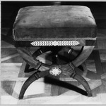 Teil einer Sitzgarnitur bestehend aus 6 Stühlen SM. 2.1.2055 - 2.1.2060, 2 Armlehnsesseln SM 2.1.2061 und 2.1.2062, 1 Polsterbank SM. 2.1.2063, 1 Fußbank SM 2.7.568 und 1 Ofenschirm SM 2.7.541. Auf der Altkarte als zugehörig vermerkt 6 Hocker SM 2.7.521 - 526.