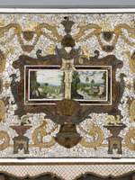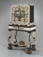 Kiefer, Buche, Palisander, Textil, Schildpatt, Elfenbein, Perlmutt, Bein, Glas, Fassung, Vergoldung |