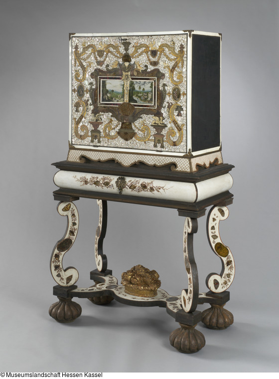 - Stelzer, Ulrike: Ein barockes Prunkkabinett aus dem Hessischen Landesmuseum in Kassel. Technologische Untersuchungen, Entwicklung eines Restaurierungskonzeptes, Konservierung und Teilrestaurierung der Schreibklappe [unveröffentlichte Diplomarbeit]. Potsdam 2011, Abbildung S. 10, 11, 14, 16, 24-31.