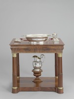 Das (unvollständige) Waschgeschirr KP 1962/14b-i gehört zu dem Toilettentisch KP 1962/14a der Fürstin Gertrude von Hanau (1803-1882), Gemahlin des Kurfürsten Friedrich Wilhelm I. von Hessen (1802-1875).