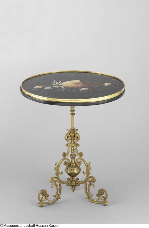 Der Tisch befand sich in Schloß Wilhelmshöhe im Zimmer des letzten Kurfürsten Friedrich Wilhelm I. von Hessen-Kassel (reg. 1831-1866).