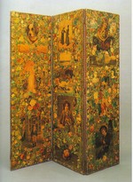 Der Paravent stammt aus dem Besitz der Familie des Berliner Malers Curt Herrmann (1854-1929).