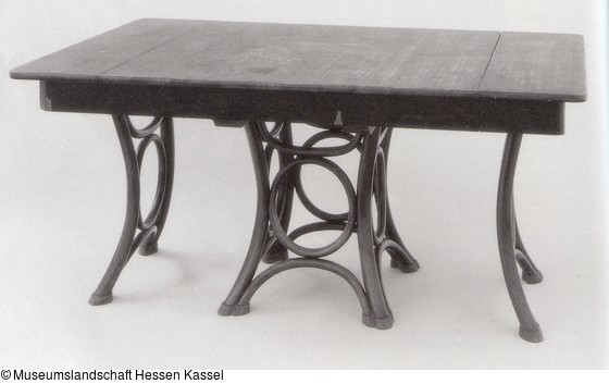 Der Tisch ist nach beiden Seiten ausziehbar. Die Stützen sind aus Bugholz gefertigt. 1884 wurde der Tisch, Modell Nr. 1, erstmals im Katalog aufgeführt und bis 1911 produziert.
