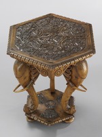 Nach Auskunft der Tochter Lieselotte Holtz, aus deren Besitz der Tisch stammt, war ihr Vater Oberst a. D. Georg Holtz (1866-1932) als Entwerfer und Möbelschreiner Autodidakt.