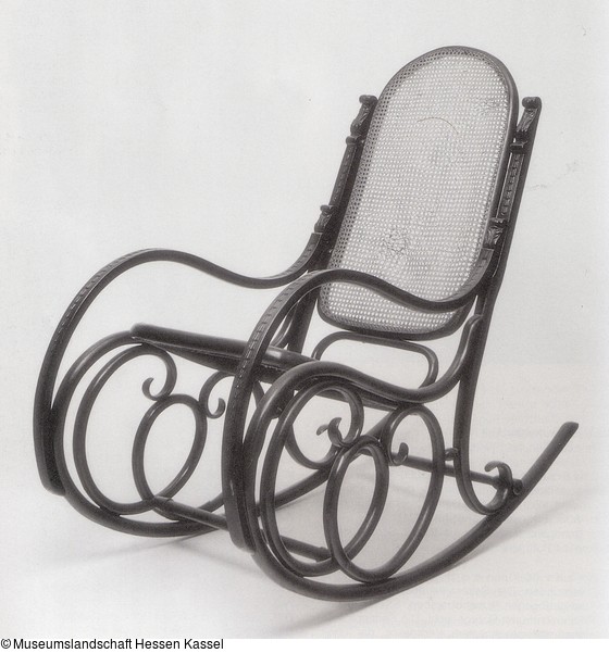 Das Schaukelfauteuil Nr. 244 (7244) ist in den Thonet-Katalogen ab 1904 bis 1912 nachweisbar. Ursprünglich war an die Rückenlehne eine Bekrönung montiert, die dem Kasseler Modell fehlt (freundliche Mitteilung von Tanja Dornseif, Archiv Thonet, Frankenberg).