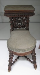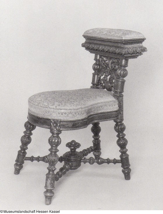 Eines der erfolgreichsten Modelle der Berliner Möbelfabrik L. & S. Lövinson war das bislang früheste, erstmals für 1858 belegbare Möbel, ein multifunktionaler "Stuhl für Raucher", basierend auf dem traditionellen Typus der Voyeuse. Für 1858 ist der Ankauf eines solchen mit blauem Plüsch bezogenen "Rauchstuhls" bei Lövinson durch Fürst Hermann von Pückler-Muskau nachgewiesen, der sich, wenn auch mit verändertem Bezug, in Schloß Branitz erhalten hat. Die Lövinsons interpretierten das Vorbild der Voyeuse in den typischen Formen des Frühbarock und deuteten es um zu einem praktischen, den zeitgenössischen Bedürfnissen angepaßten Schmuckmöbel, das mit dem geschnitzten Dekor von Pfeifen, Tabaksblättern und Tabaksbeutel auf den den neuen Zweck abgestimmt war und damit zugleich das hohe Vermögen der Firma bei Schnitzarbeiten präsentierte. Noch Jahre später war der "Rauchstuhl" in mindestens zwei nachweisbaren Varianten im Programm und wurde hoch gelobt.