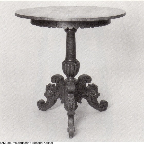 Runder Tisch mit Volutenbeinen |