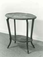 Zweigeschossige ovale Etagere mit Blüten und Schmetterlingen