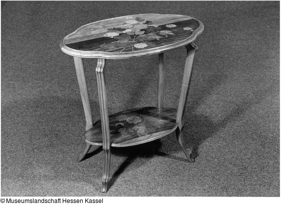 Nußbaumholz, Intarsien aus verschiedenen Edelhölzern |
