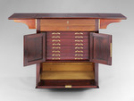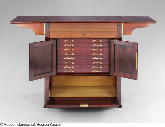 Der Besteckschrank gehörte zum Nachlaß des Malers Curt Herrmann (1854-1929), Mitglied der Berliner Secession und des Deutschen Künstlerbundes. Henry van de Velde, mit dem Herrmann eine lebenslange Freundschaft verband, gestaltete die Einrichtung beider Berliner Wohnungen Herrmanns. Herrmann hatte van de Velde im Frühjahr 1897 durch die Vermittlung des Kunstschriftstellers Julius Meier-Graefe (1867-1935) in Brüssel kennengelernt und wurde sein erster deutscher Kunde.